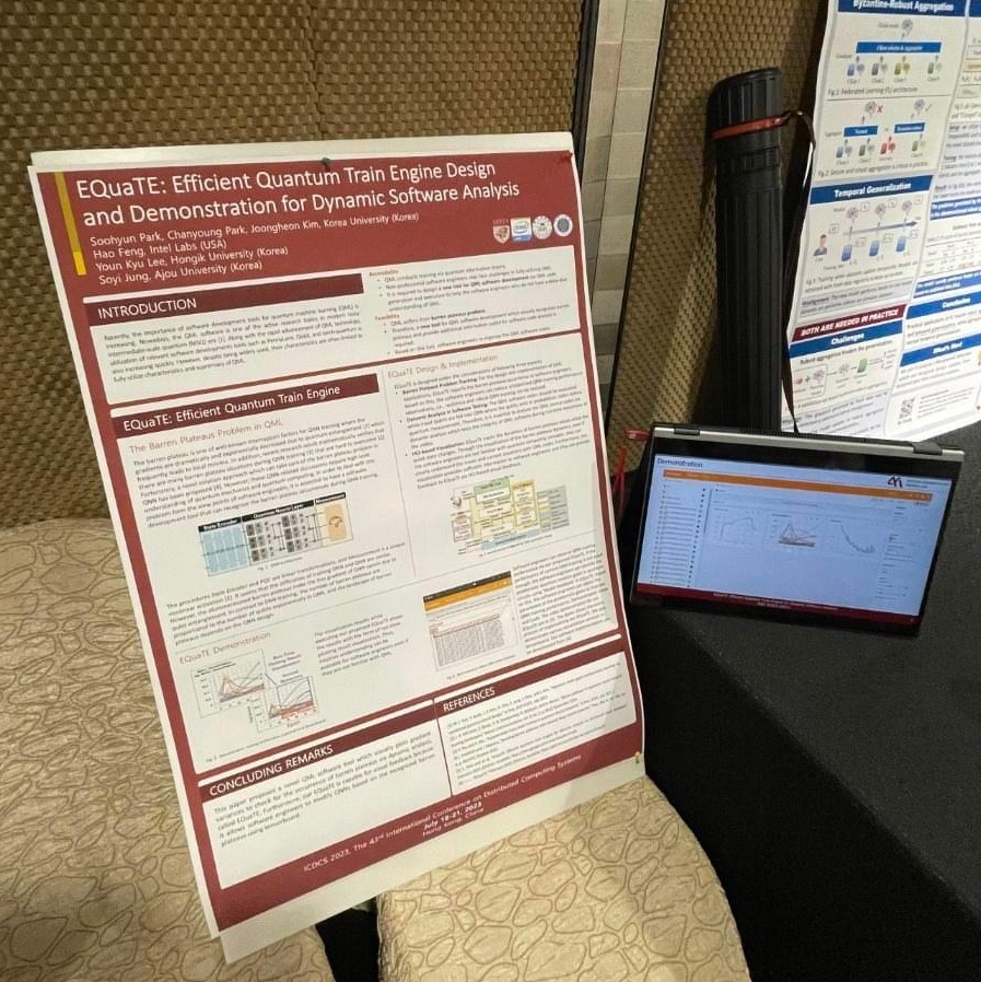 The left figure is my poster titled “Coordinated Multi-Agent Reinforcement Learning for Unmanned Aerial Vehicle Swarms in Autonomous Mobile Access Applications”. Next, the right one is the poster for the demo short paper I co-authored, titled “EQuaTE: Efficient Quantum Train Engine Design and Demonstration for Dynamic Software Analysis”. For the demo short paper, we also prepared a demonstration [video] to showcase our work. Especially, by discussing the papers with many renowned scholars from abroad, I was able to identify areas for improvement and gain insights into future research trends and directions.